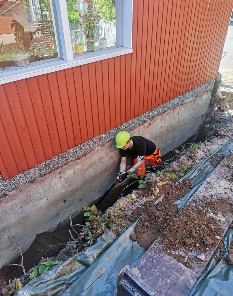 Salaojien ja sokkelin esiinkaivuu vaatii tarkkaa otetta, jotta rakenteet säilyvät vahingoittumattomina. Paljastamme talon sokkelin ja perustusten vierustat esimerkiksi salaojaremonttia tai vedeneristystyötä varten hallitusti ja siististi. Kaivamme vanhat salaojaputket esiin ja uusimme salaojitusjärjestelmän tarvittaessa, mikä parantaa rakennuksen kuivana pysymistä. Huolellinen esiinkaivuu varmistaa, että korjaus- tai asennustyöt voidaan suorittaa tehokkaasti ja turvallisesti. Työn jälkeen täytämme kaivannot asianmukaisesti ja tiivistämme maat, jotta pihapiiri jää siistiin kuntoon.